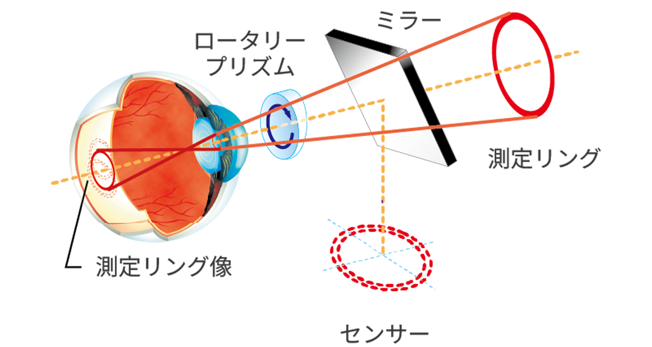 眼底上に投影する測定リングを偏心回転させ、眼底から反射されたリング像から測定結果を得ることができます。最小瞳孔径φ2mm (屈折力測定時)で瞳孔径の小さな眼でも測定可能です。