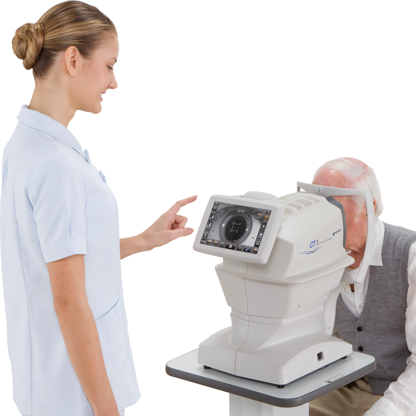 The CT-1/CT-1P provides an innovative operation experience and eliminates the need for a control lever. You will save space in your examination room. The air-puff mechanism ensures a soft air-puff and reduces the maintenance and cleaning.